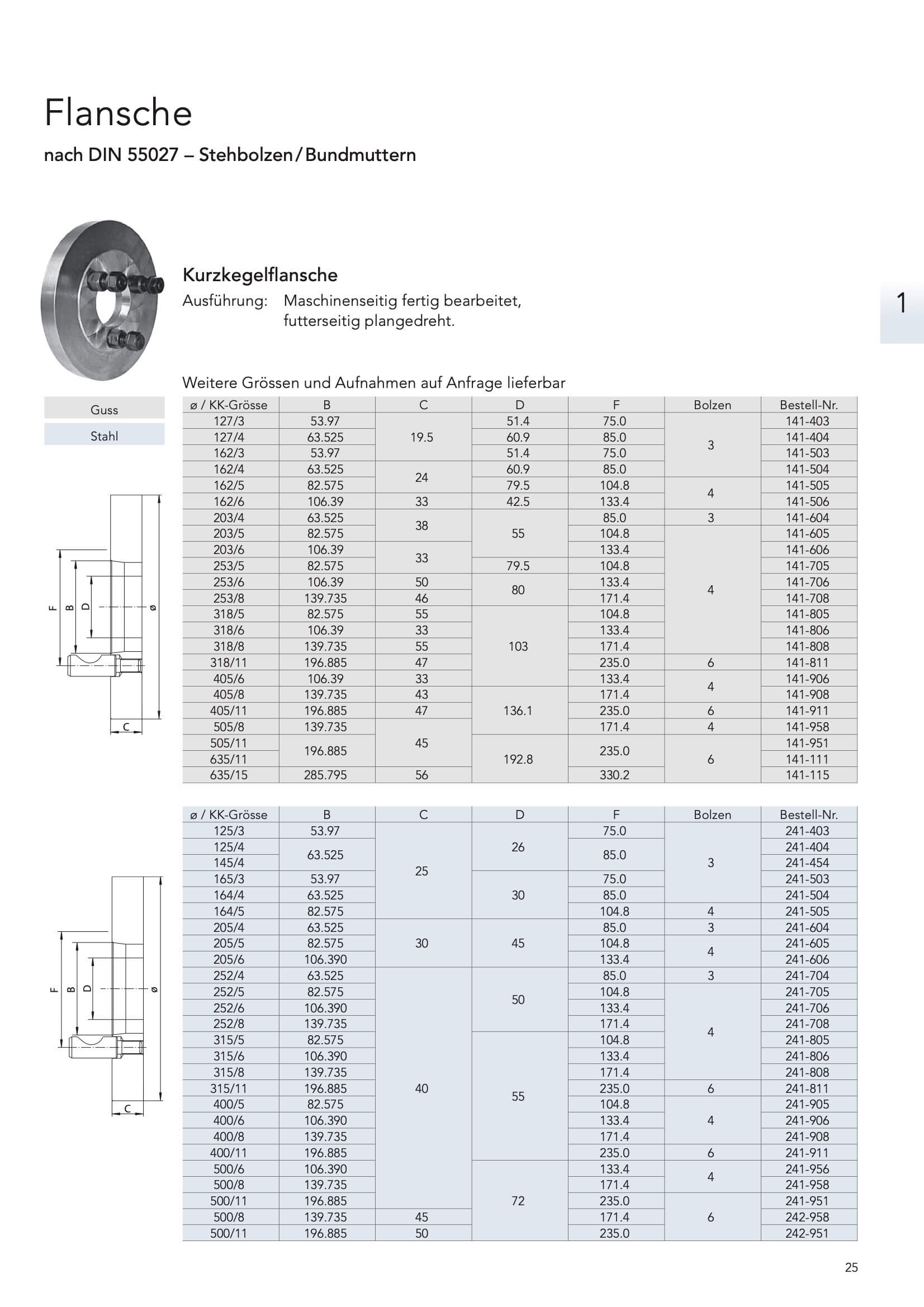 Flansche nach DIN 55027 – Stehbolzen/Bundmuttern ab KK-3 und Ø127 mm bis KK-15 und Ø635 mm,
