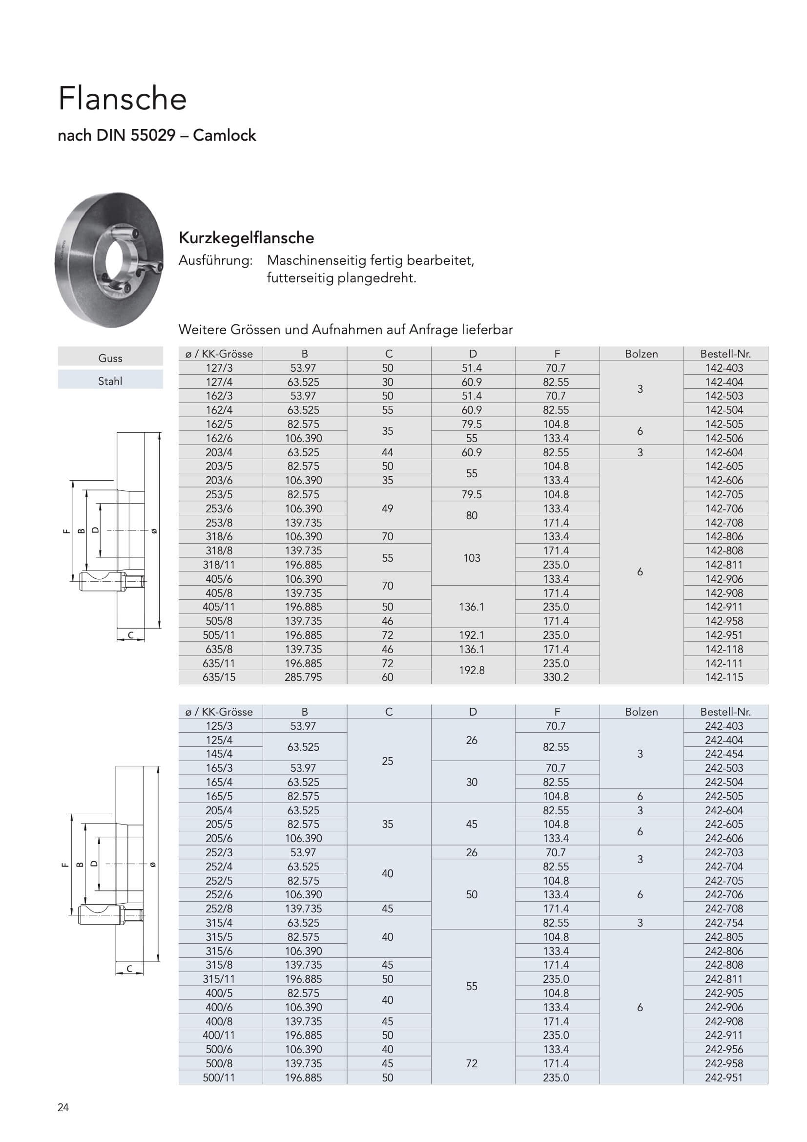 Flansche nach DIN 55029 – Camlock ab KK-3 und Ø127 mm bis KK-15 und Ø635 mm,