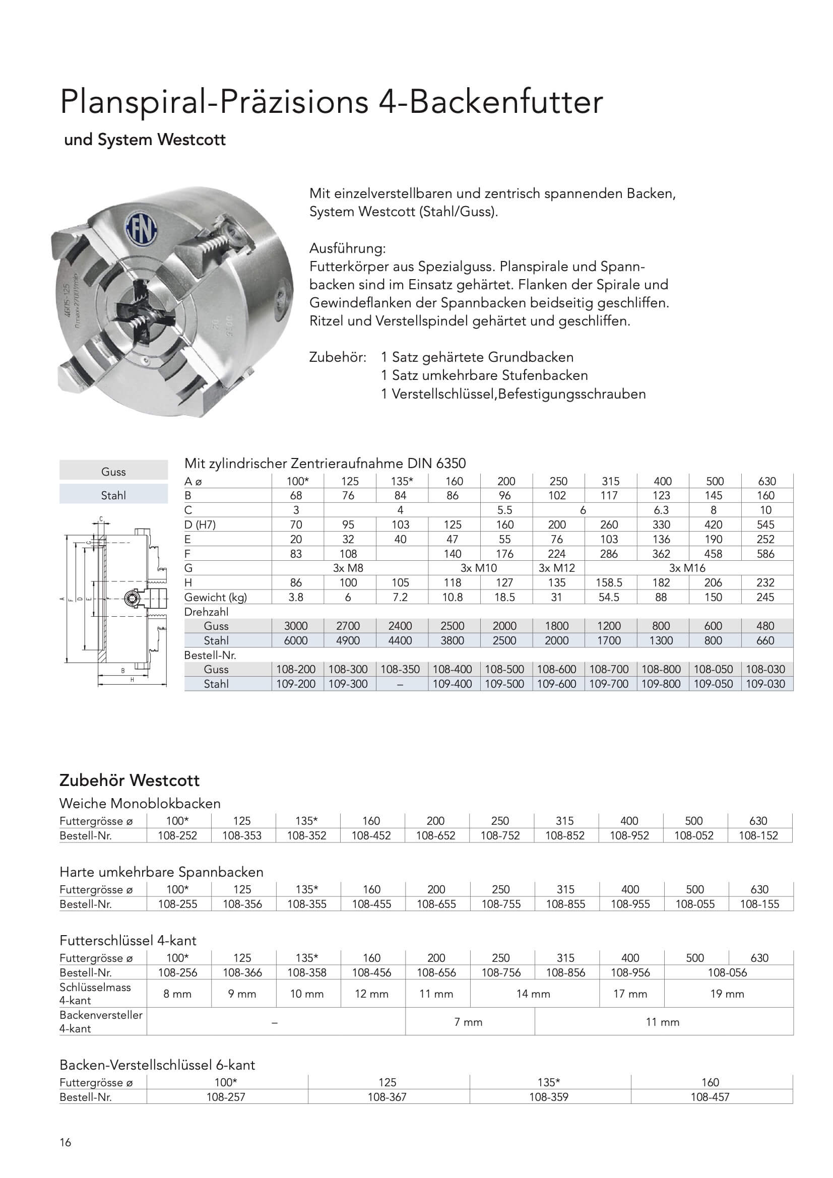 Sie finden bei uns Planspiral-Präzisions 4-Backenfutter System Westcott von ø 100 bis 630 mm!